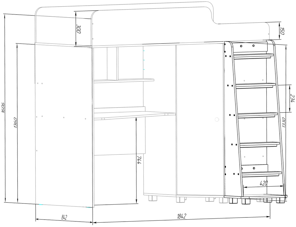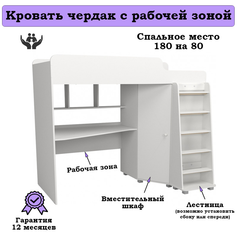 Кровать-чердак Капризун 5-белый, 184х114х168 см