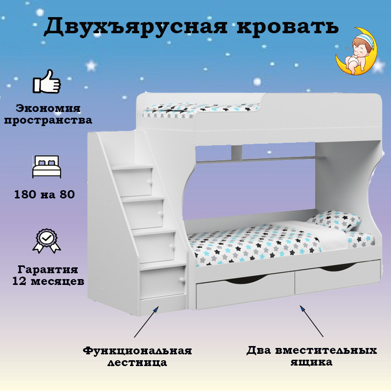 Двухъярусная кровать Капризун 6 - белый, 226х84х167 см