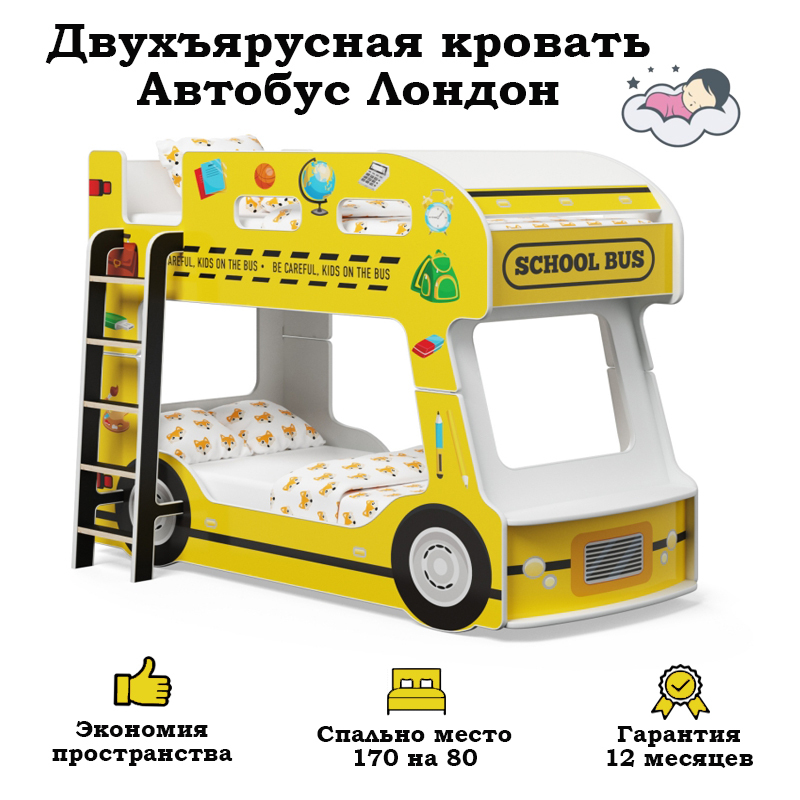 Двухъярусная кровать Капризун Автобус-3, 195х90х146 см