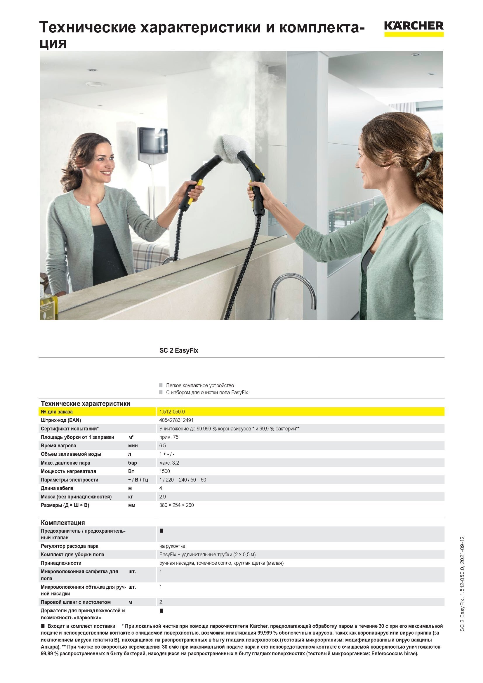 Пароочиститель Karcher SC 2 EasyFix (1.512-050.0), желтый
