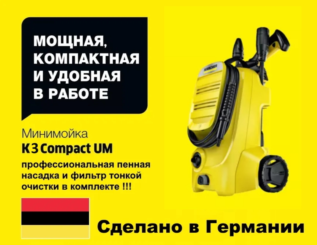 Мойка высокого давления K 3 Compact + профессиональная пенная насадка + фильтр