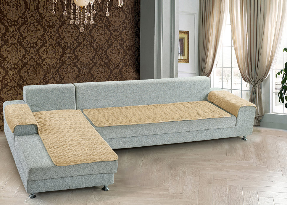 Чехол на угловой диван и кресло "KARTEKS" без оборки Цвет Кремовый