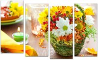 Картина модульная Картиномания "Корзинка с цветами", 90 х 57 см, Дерево, Холст