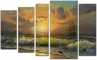 Картина модульная Картиномания "Парусник на фоне морского заката", 90 х 57 см, Дерево, Холст