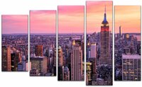 Картина модульная Картиномания "Закат в центре Нью-Йорка", 120 x 77 см, Дерево, Холст
