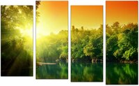 Картина модульная Картиномания "Закат на речке", 90 х 57 см, Дерево, Холст
