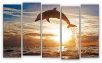 Картина модульная Картиномания "Дельфин на закате", 90 х 57 см, Дерево, Холст
