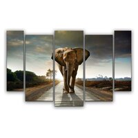 Модульная картина Картиномания "Магистральный слон", 120х77 см, 5 модулей