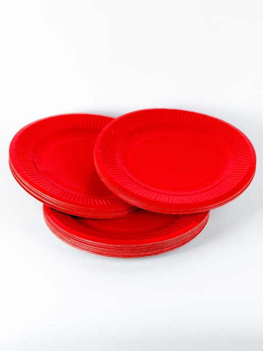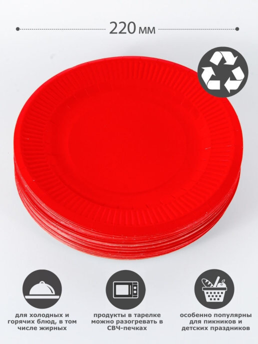 Тарелка одноразовая "солнышко" красная 220мм, Набор 50шт