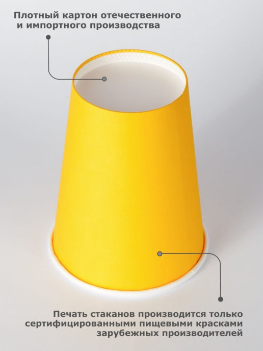 Одноразовый стакан для кофе, чая, холодных и горячих напитков, 350мл. Желтый набор 50шт.
