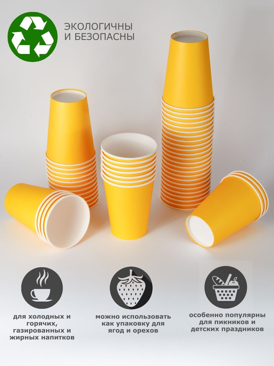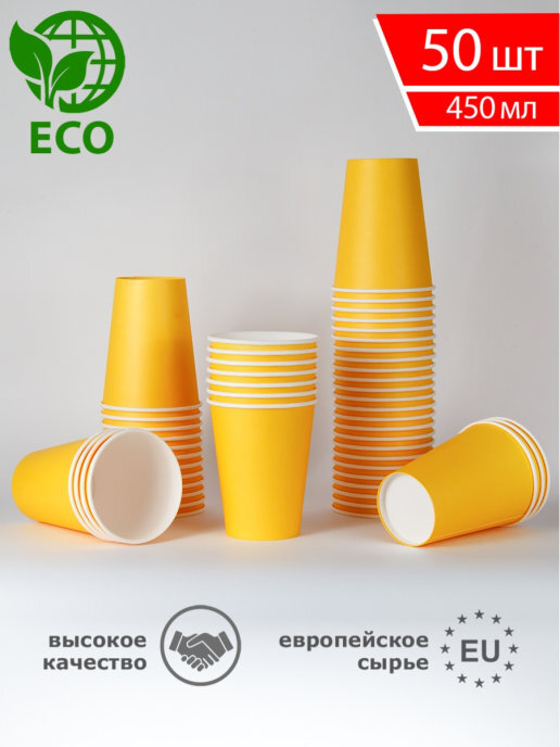 Одноразовые стаканы для кофе, чая, холодных и горячих напитков, 450мл. Желтый набор 50шт.