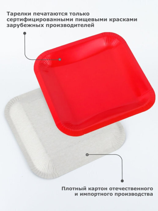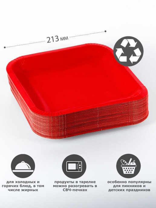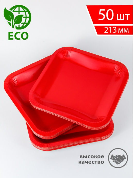 Тарелка одноразовая "квадратная" красная 213мм, Набор 50шт