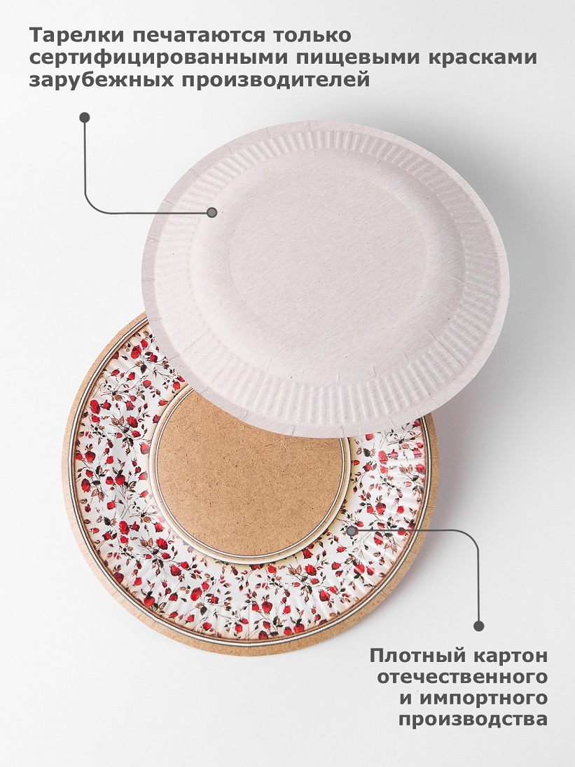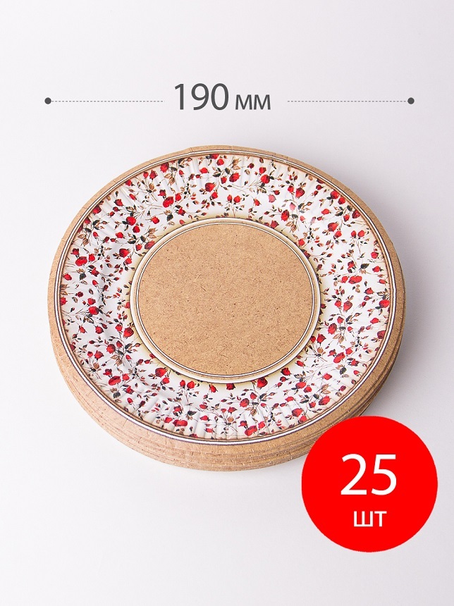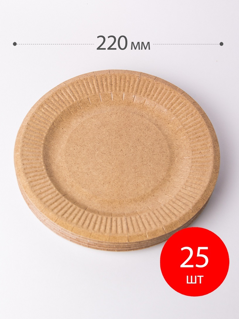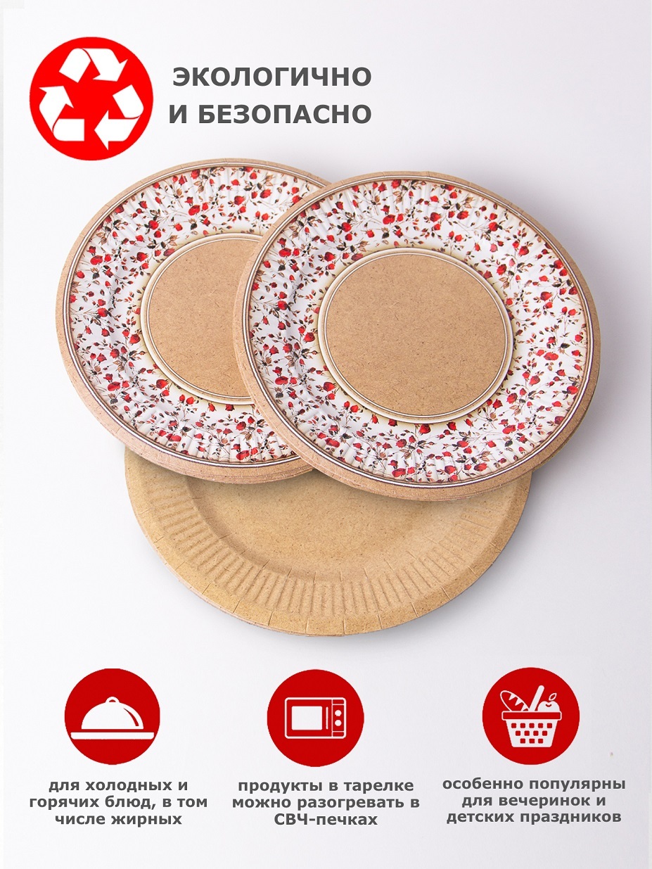 Набор одноразовых тарелок "солнышко" 50шт, Крафт 220мм по 25шт, Вальс цветов 190мм по 25шт