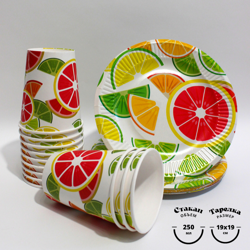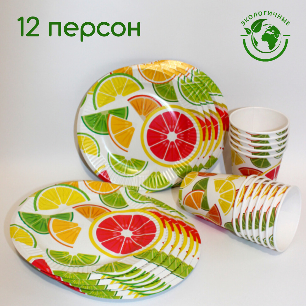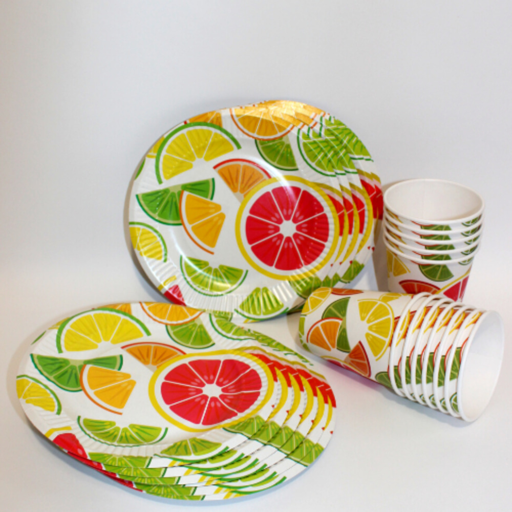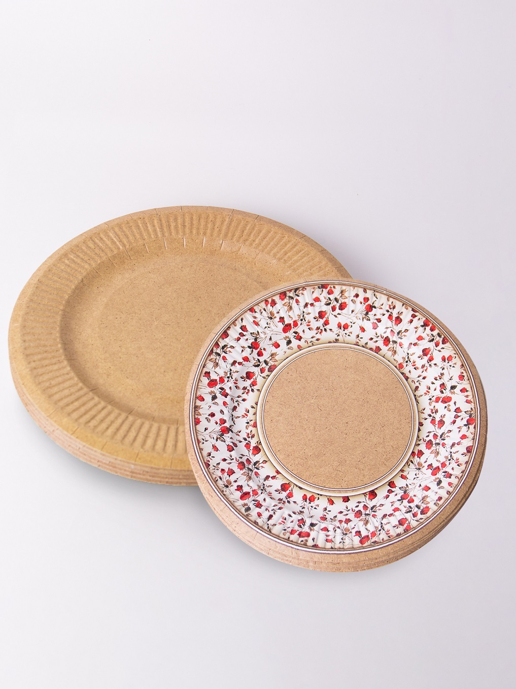 Набор одноразовых тарелок "солнышко" 50шт, Крафт 220мм по 25шт, Вальс цветов 190мм по 25шт