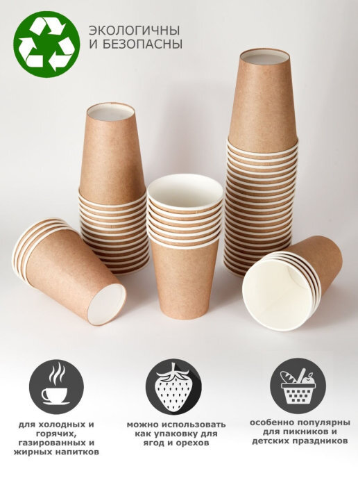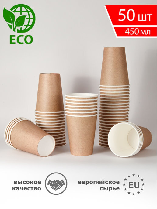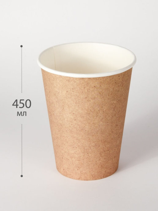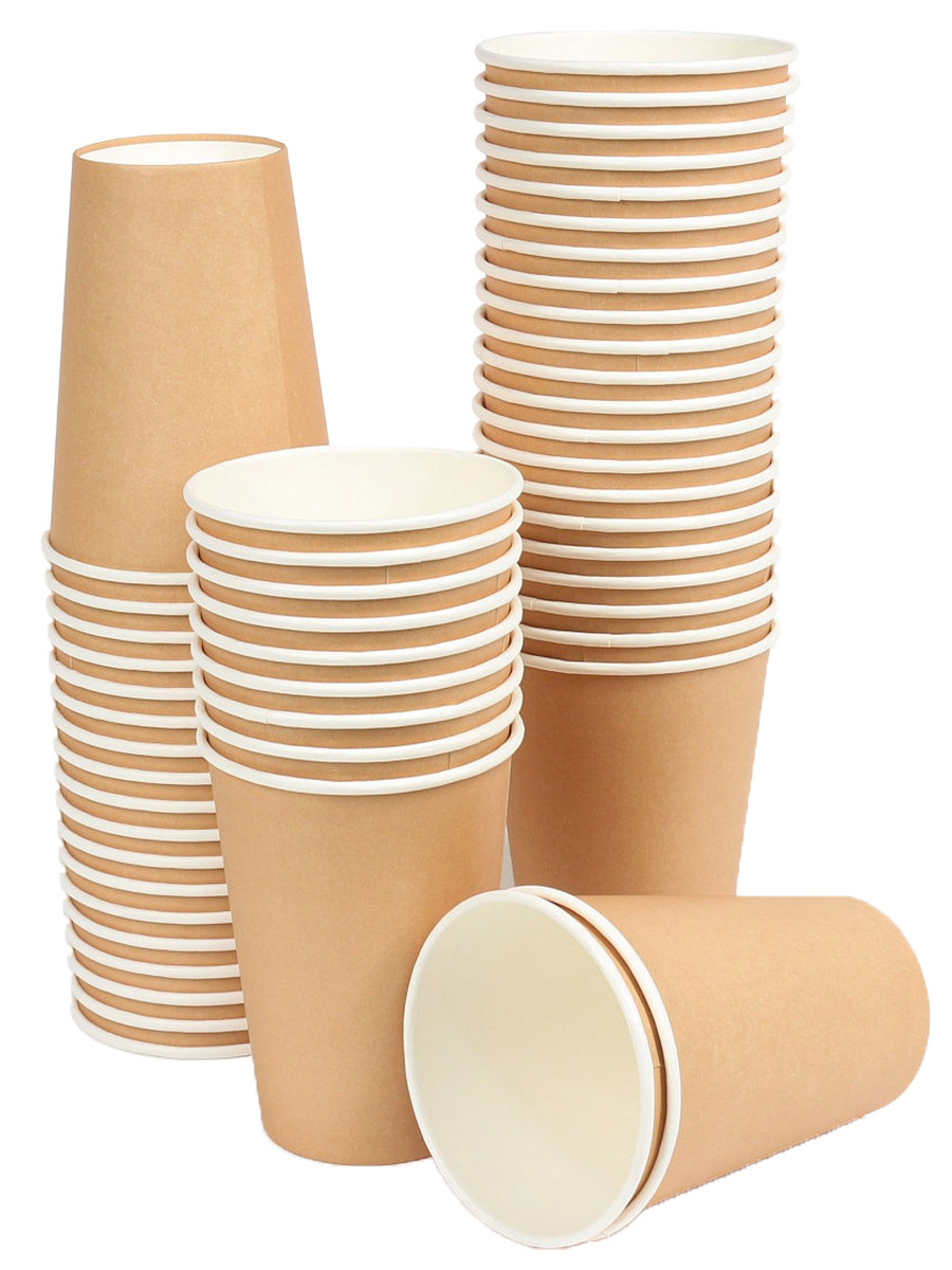Одноразовые стаканы для кофе, чая, холодных и горячих напитков, 450мл. Крафт набор 50шт.