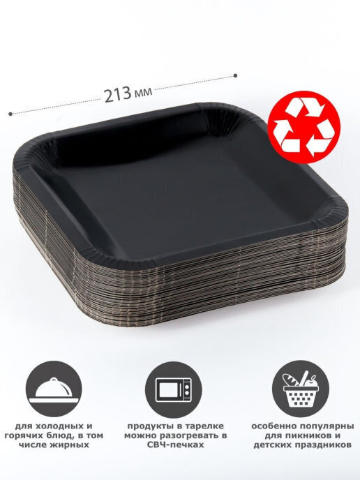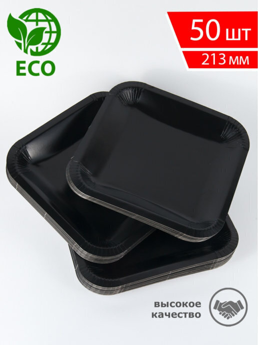 Тарелка одноразовая "квадратная" черная 213мм, Набор 50шт