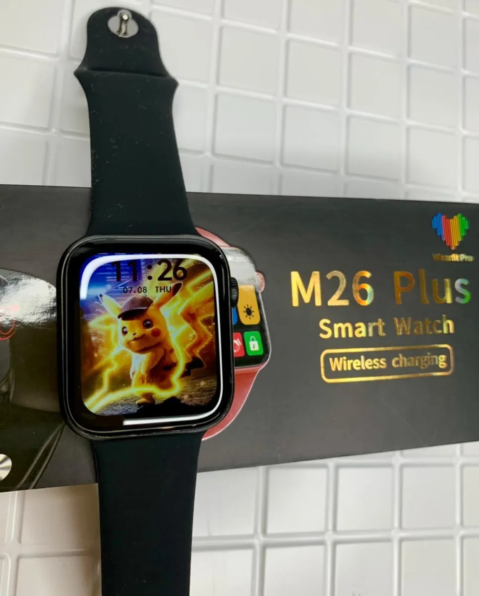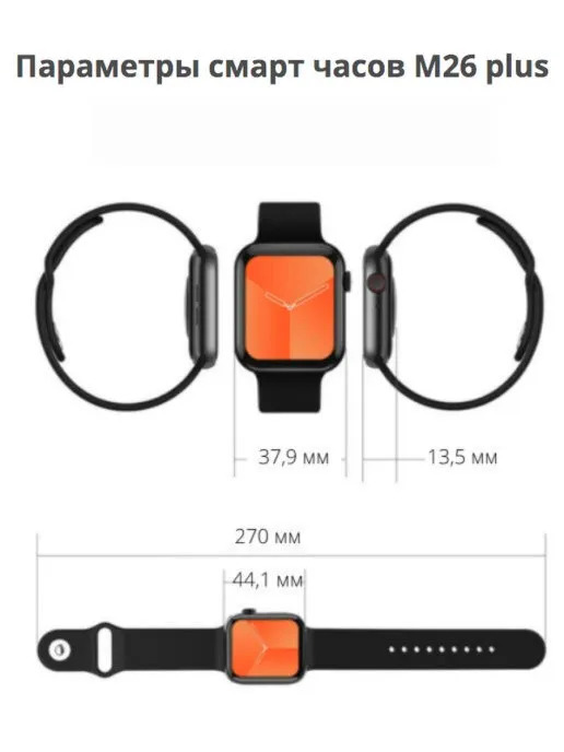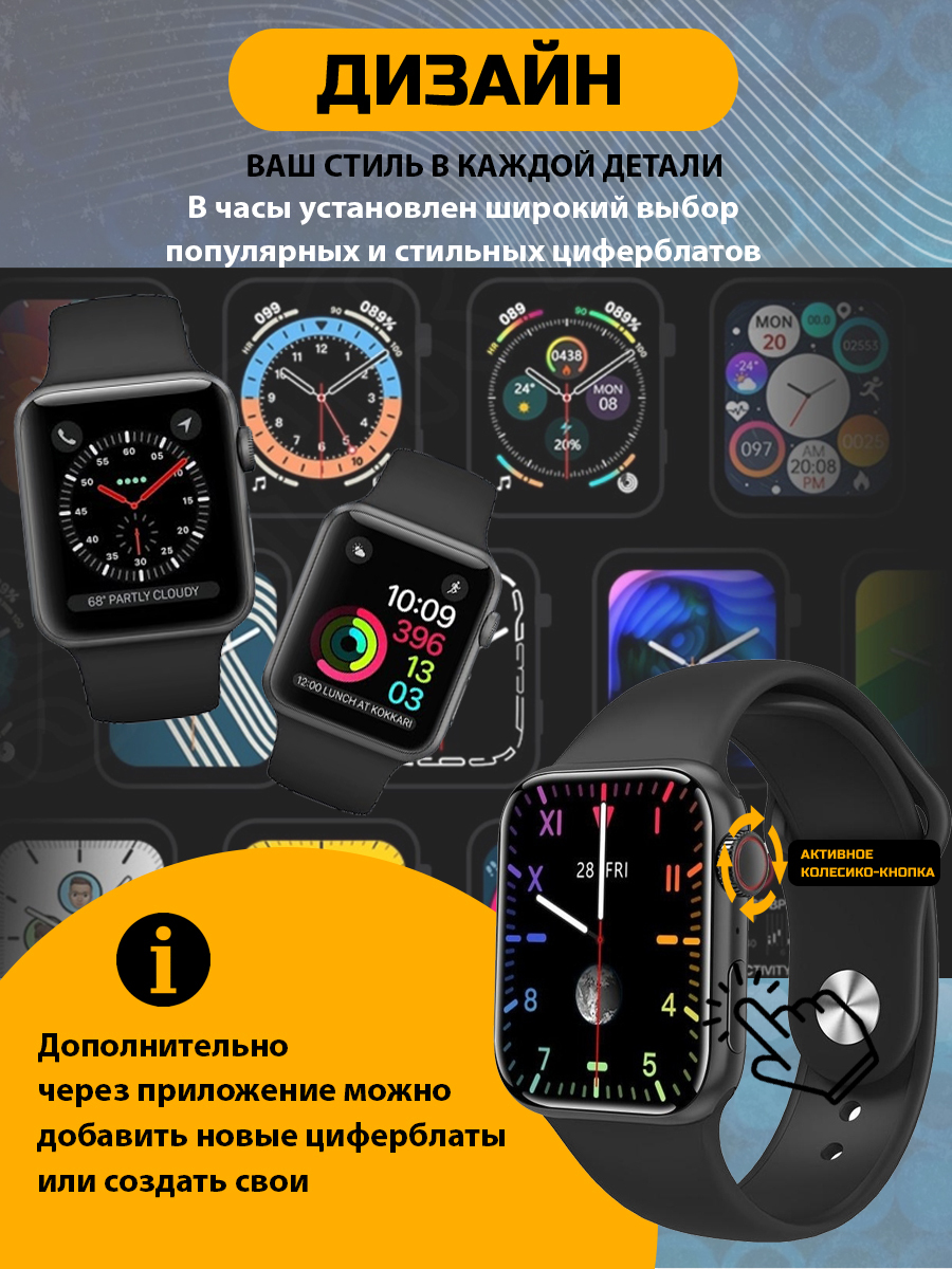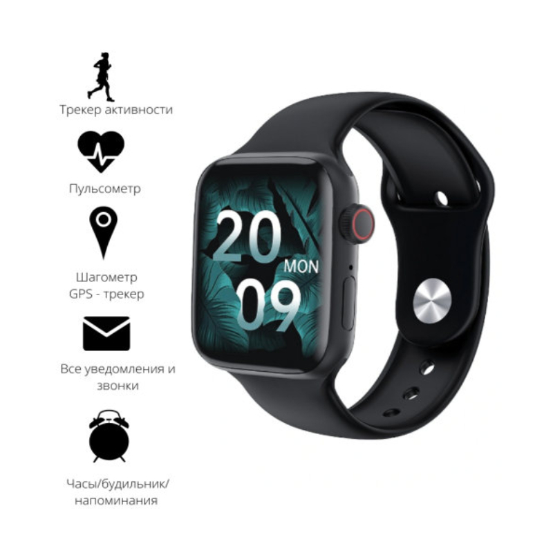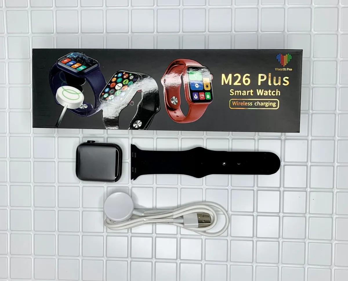 Умные часы KASBRAND M26 Plus с активной кнопкой и беспроводной зарядкой / Смарт часы Smart Watch M26+ / НОВИНКА 2021, 44mm, черный