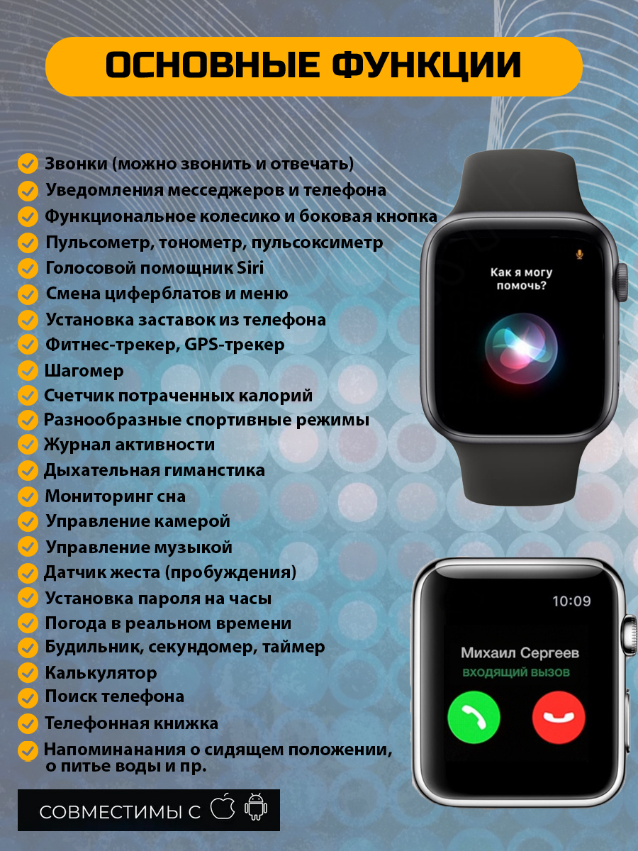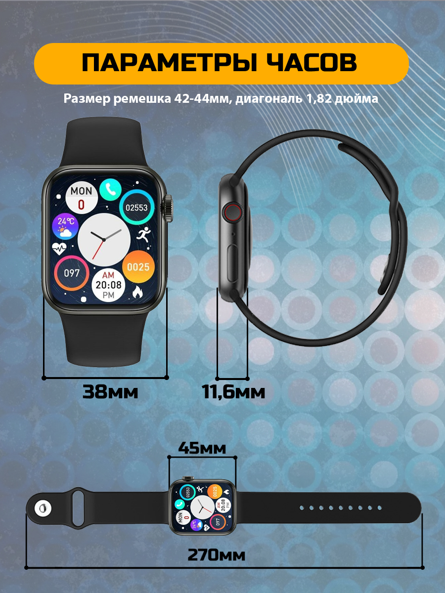 Умные часы KASBRAND HW22 / Смарт часы Smart Watch HW22 / Smart Watch 6 / НОВИНКА 2021!, 44mm, черный