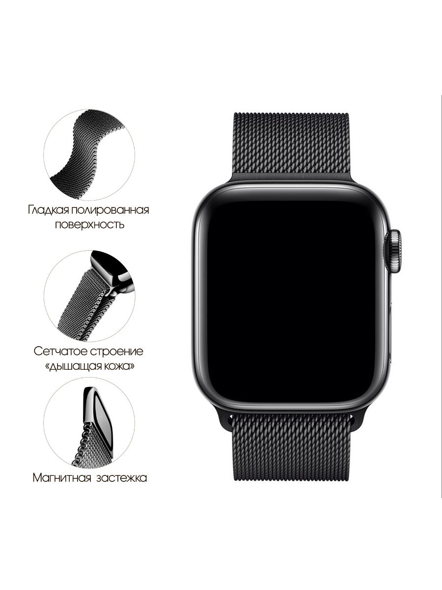 Миланский металлический ремешок для смарт часов Apple Watch series 1-6 и Эпл Вотч SE 42-44 mm Миланская петля (milanese loop), Черный