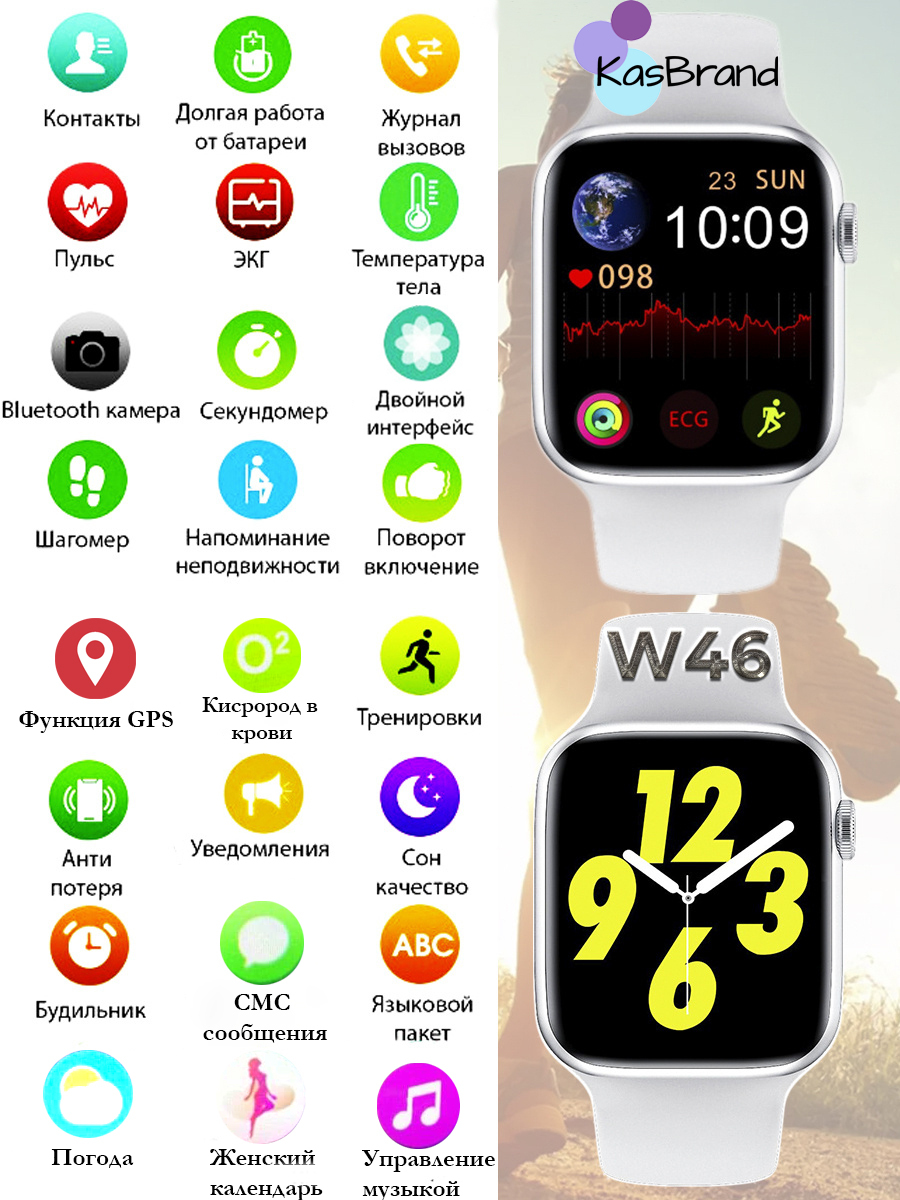 Умные часы KASBRAND W46 / Smart Watch W46 / Смарт-часы W46 / IWO W46 / Новинка 2021, 44mm, белый