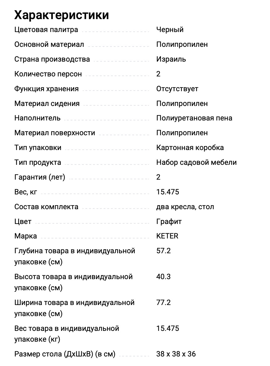 Комплект садовой мебели: Keter Набор мебели DELANO SET ГРАФИТ