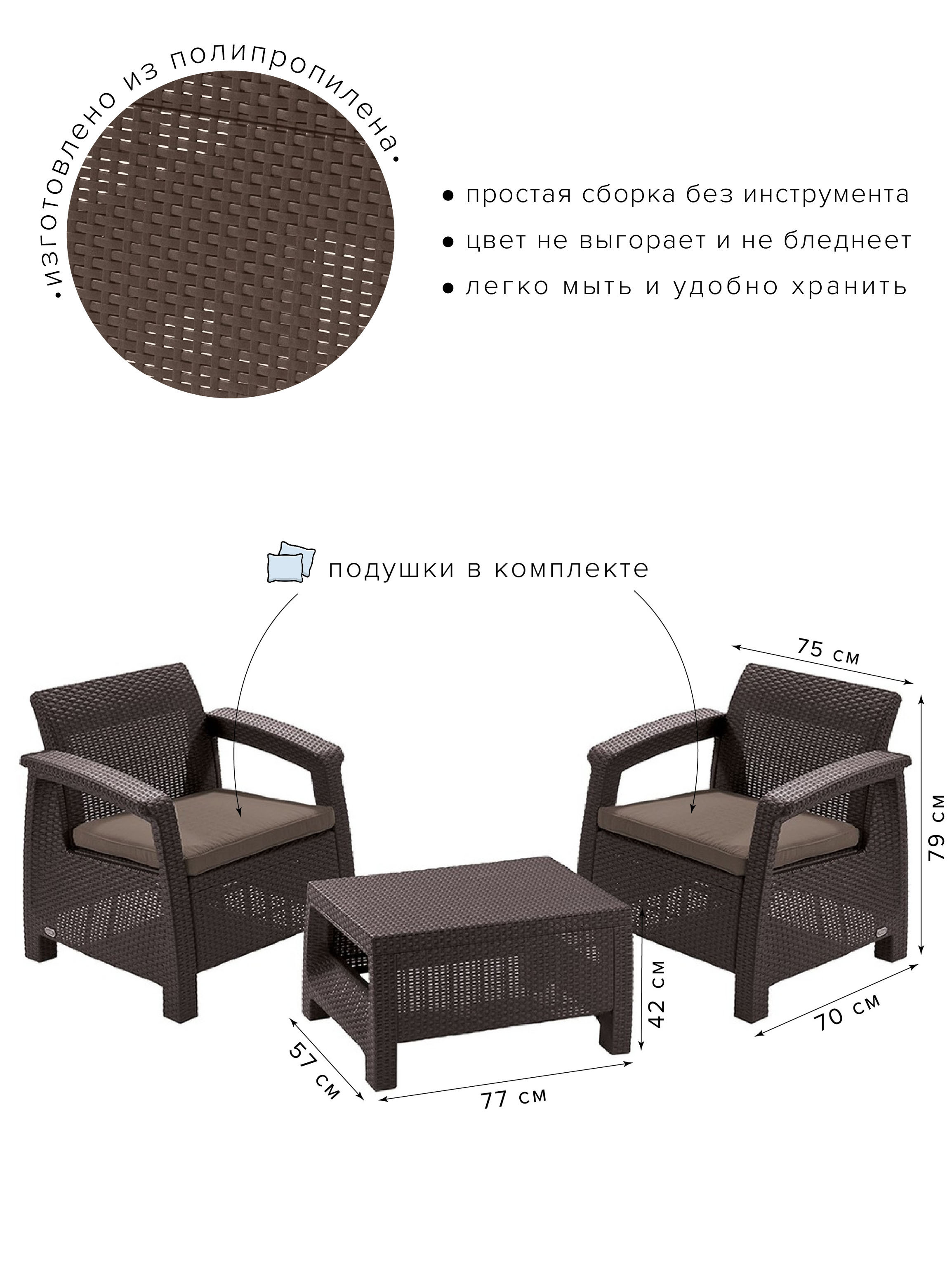 Комплект садовой мебели: Keter Корфу сет (Corfu set) коричневый (производство Россия)