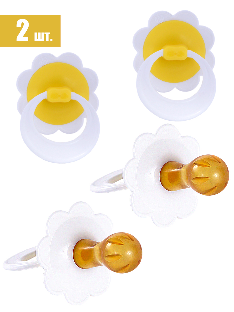 Соска-пустышка Ромашка с кольцом желтая 2шт