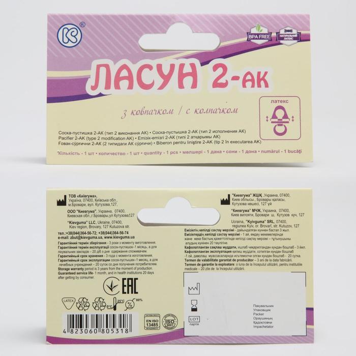 Соска-пустышка "Лакомка" с колпачком, латексная, цвет МИКС от 0 мес.