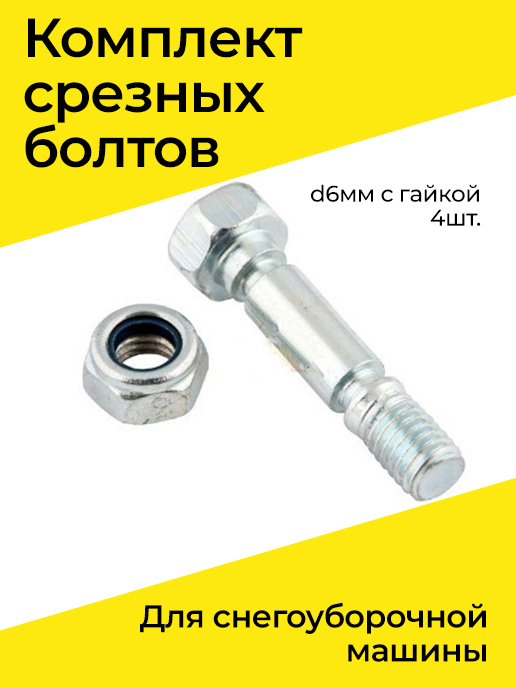 Комплект срезных болтов для снегоуборочной машины d6мм с гайкой (4шт.)