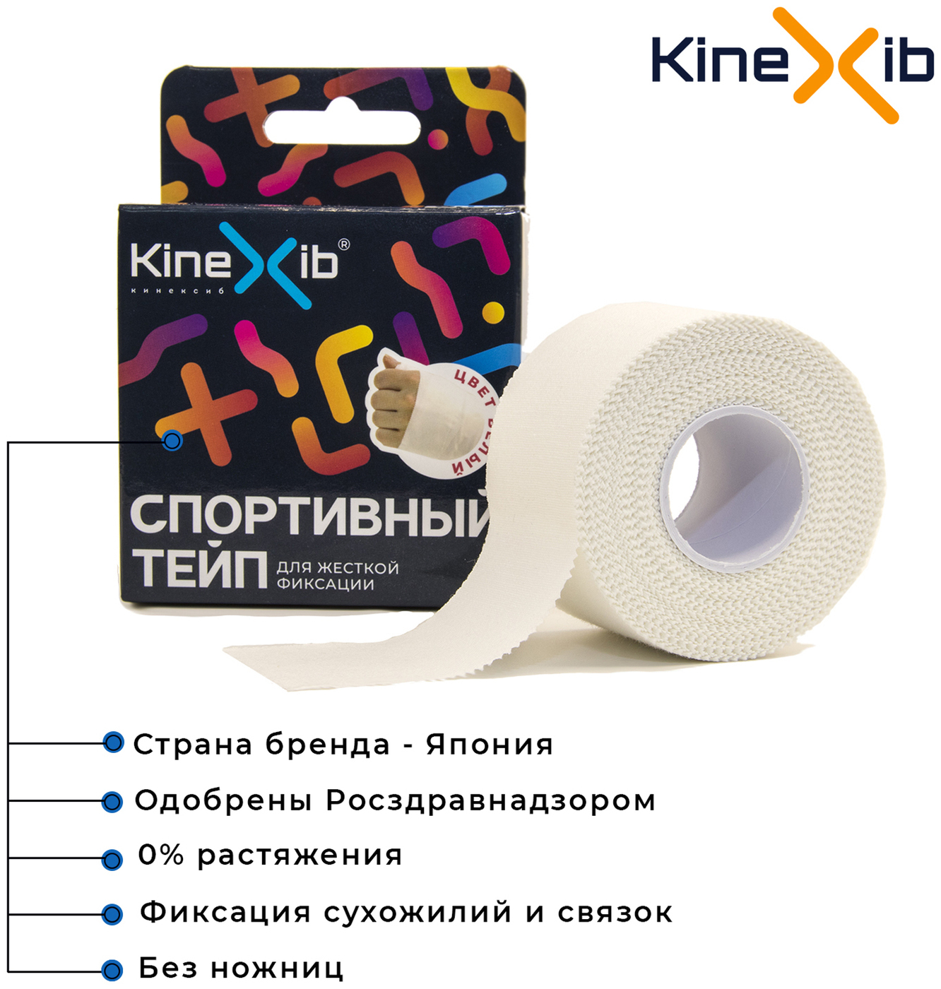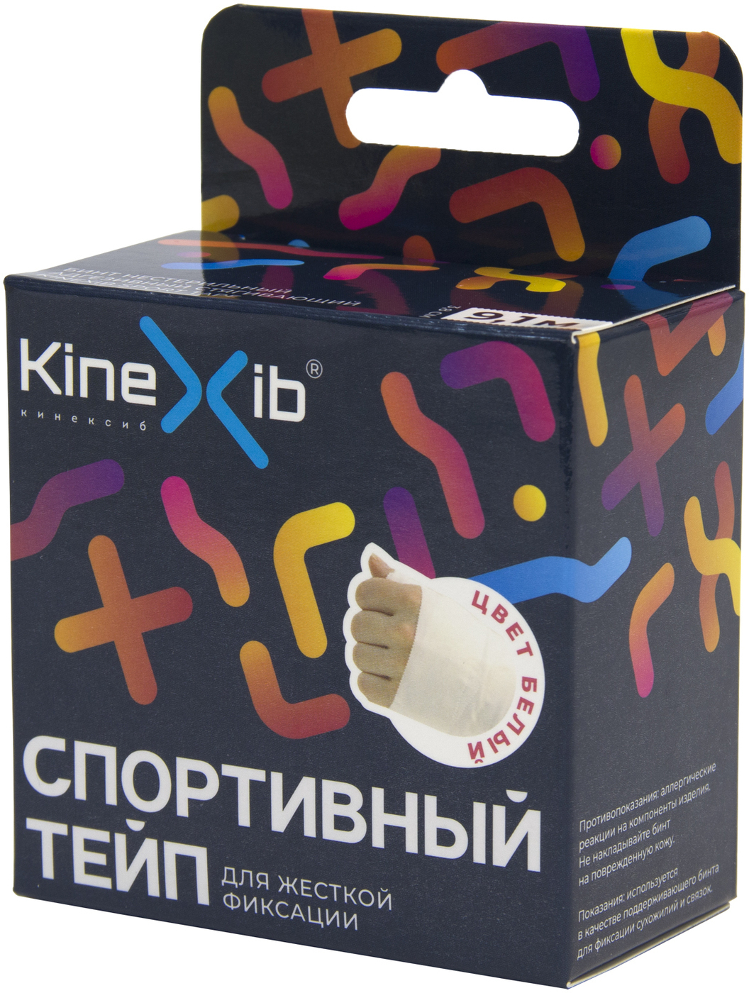 Спортивный бинт Kinexib SPORT tape неэластичный, для жесткой фиксации 3.8см Х 9.1 м, белый