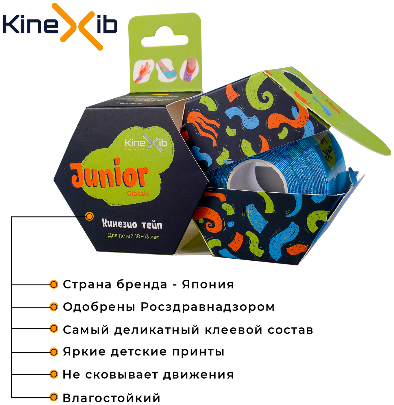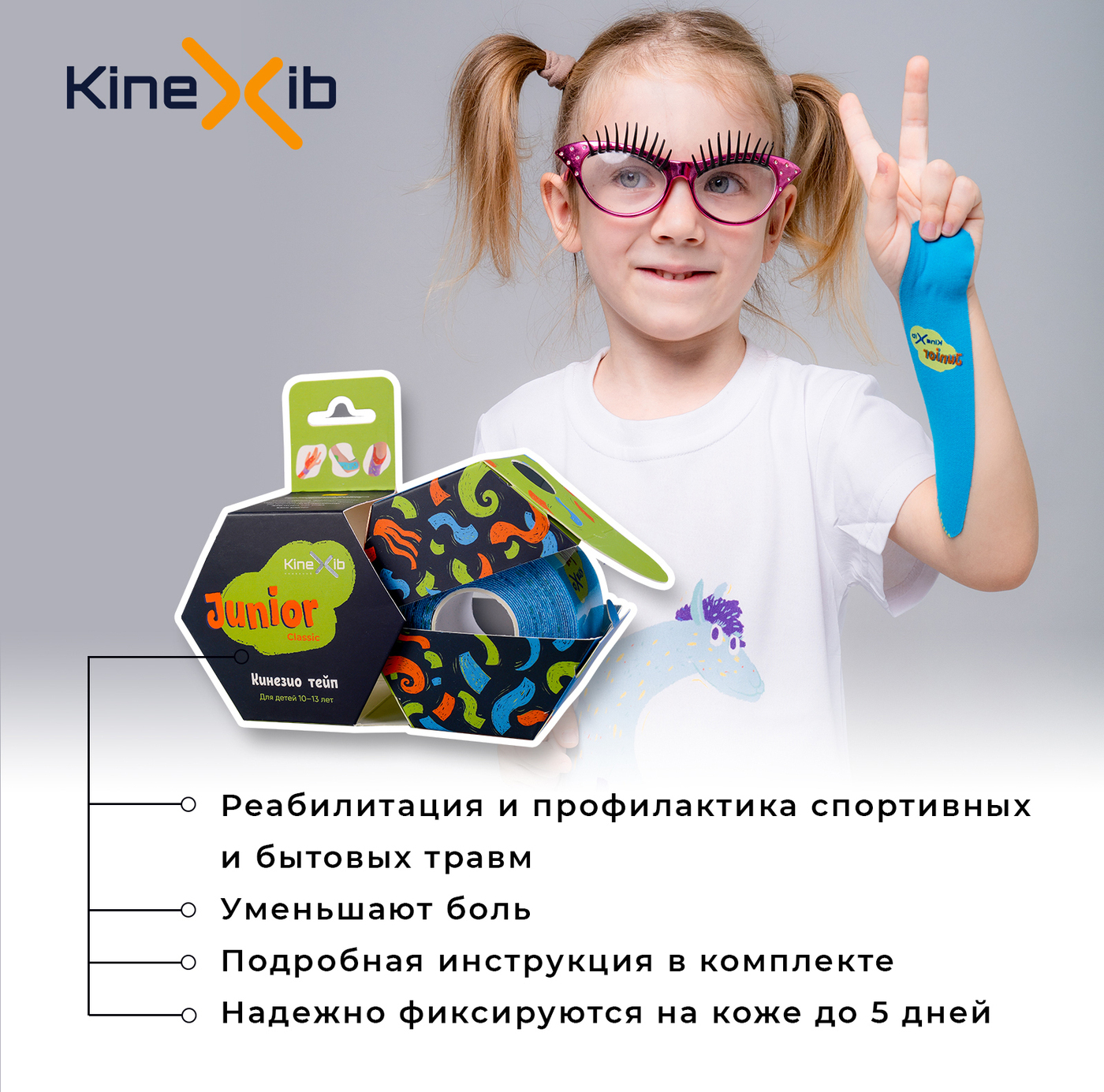 Кинезиотейп Kinexib CLASSIC Junior tape 4см Х 4 м, синий
