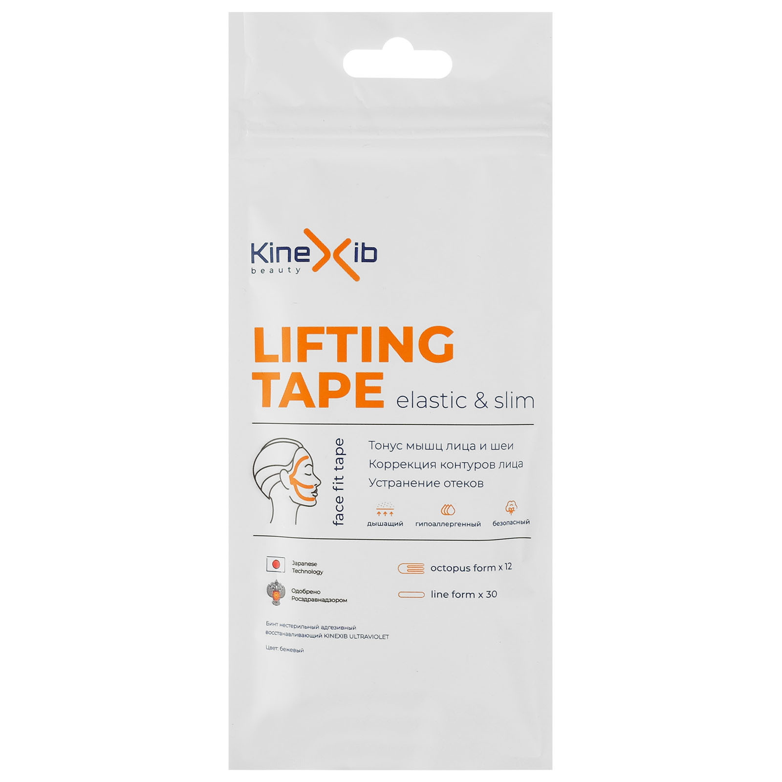 Кинезиотейп для лица Kinexib Lifting Tape, бежевый