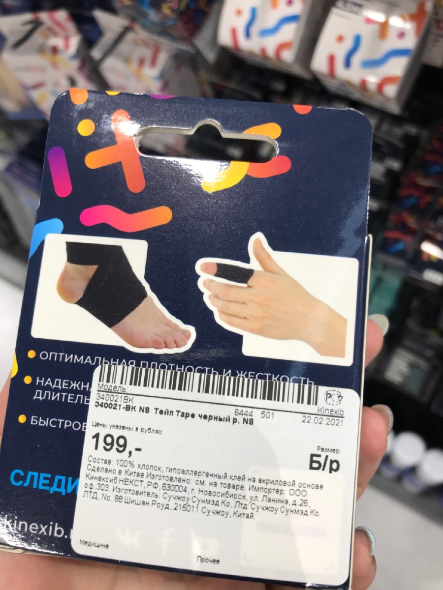 Кинезиотейп Kinexib PRO tape 5см Х 1 м, черный