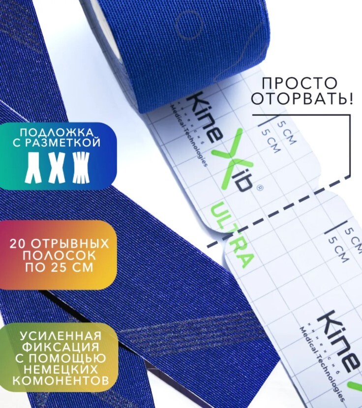 Кинезиотейп Kinexib PRO 5см Х 5 м, синий