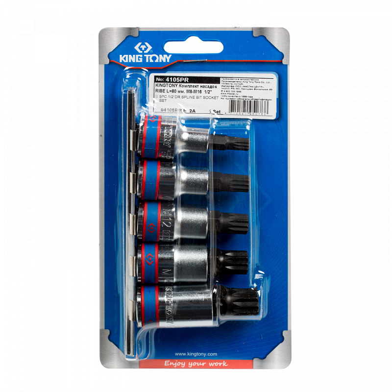 Набор торцевых насадок 1/2", Spline, М8-М16, 5 предметов KING TONY 4105PR