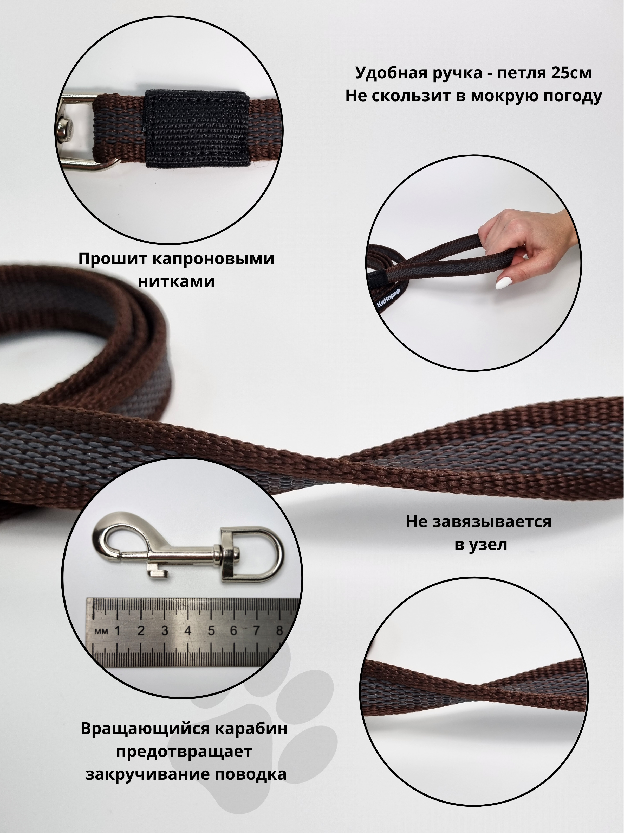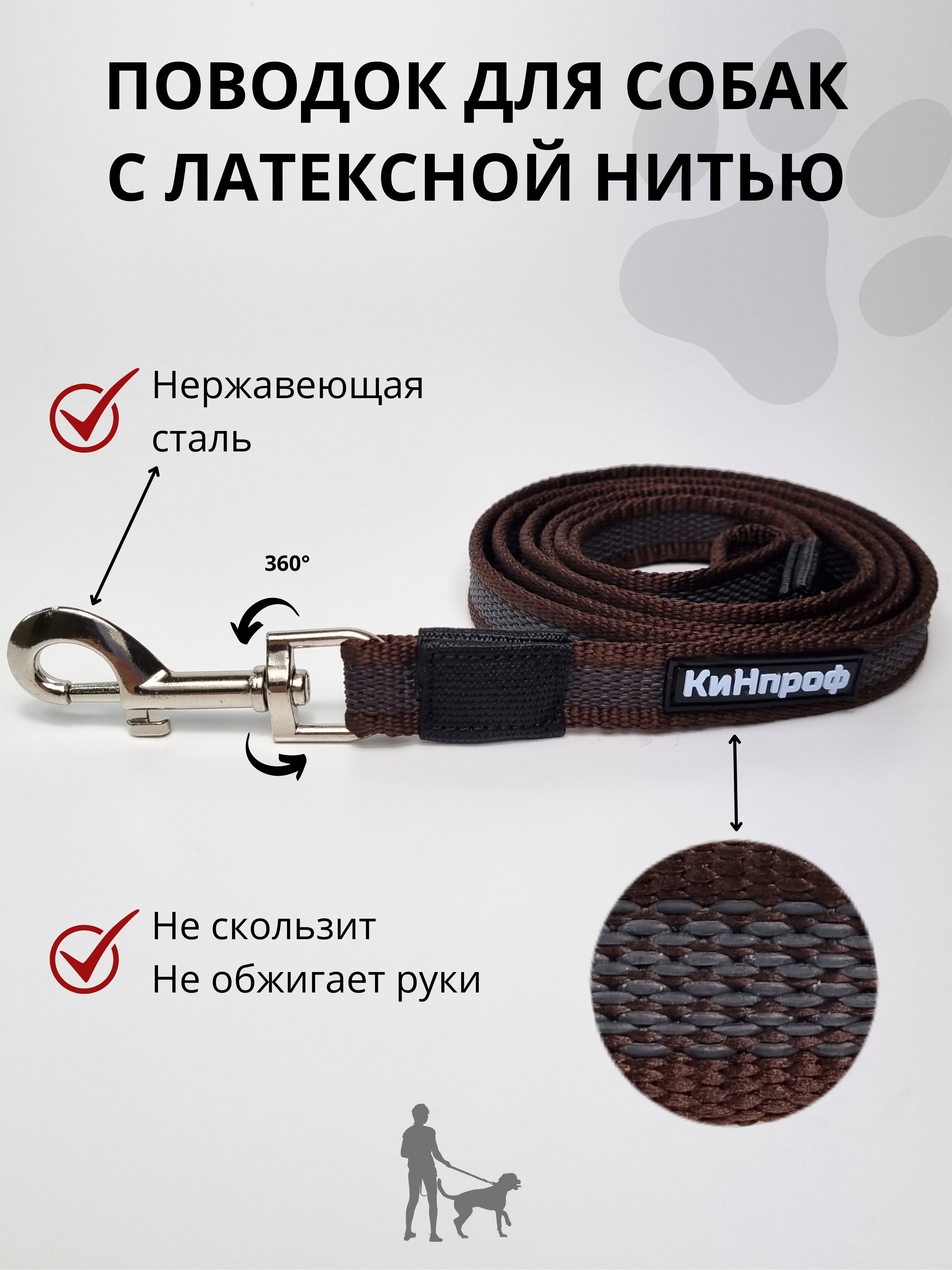 Поводок прорезиненный для собак (с латексной нитью),стальной карабин, длина 2,5 м коричневый