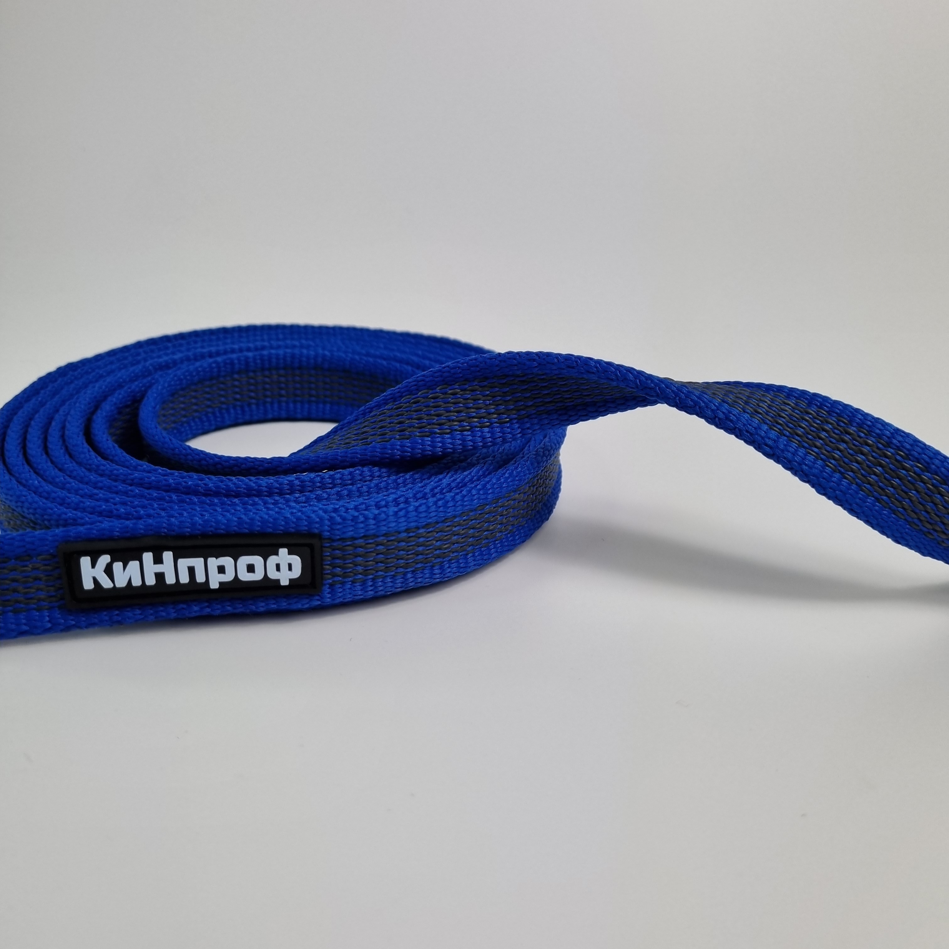 Прорезиненный поводок для собак (с латексной нитью),стальной карабин, длина 3,5м, синий