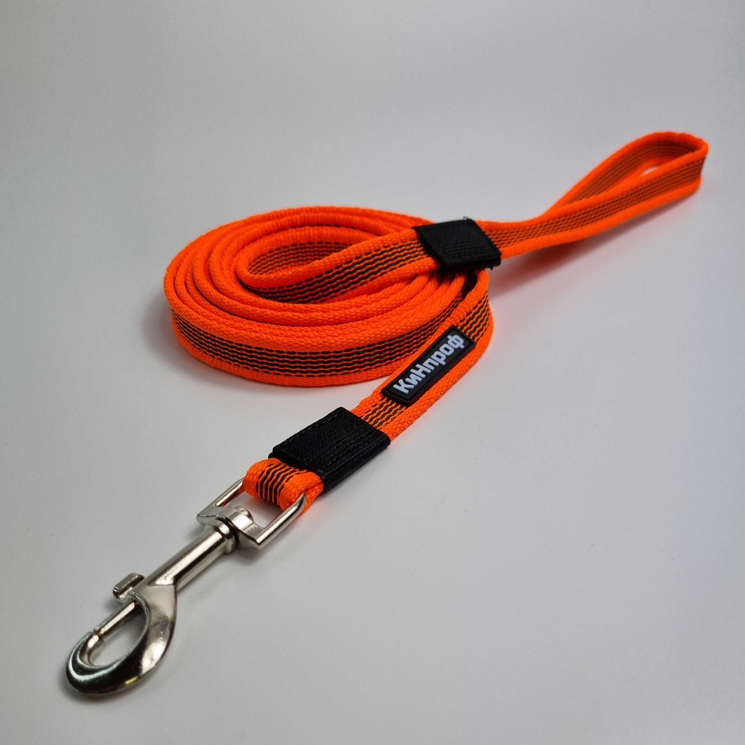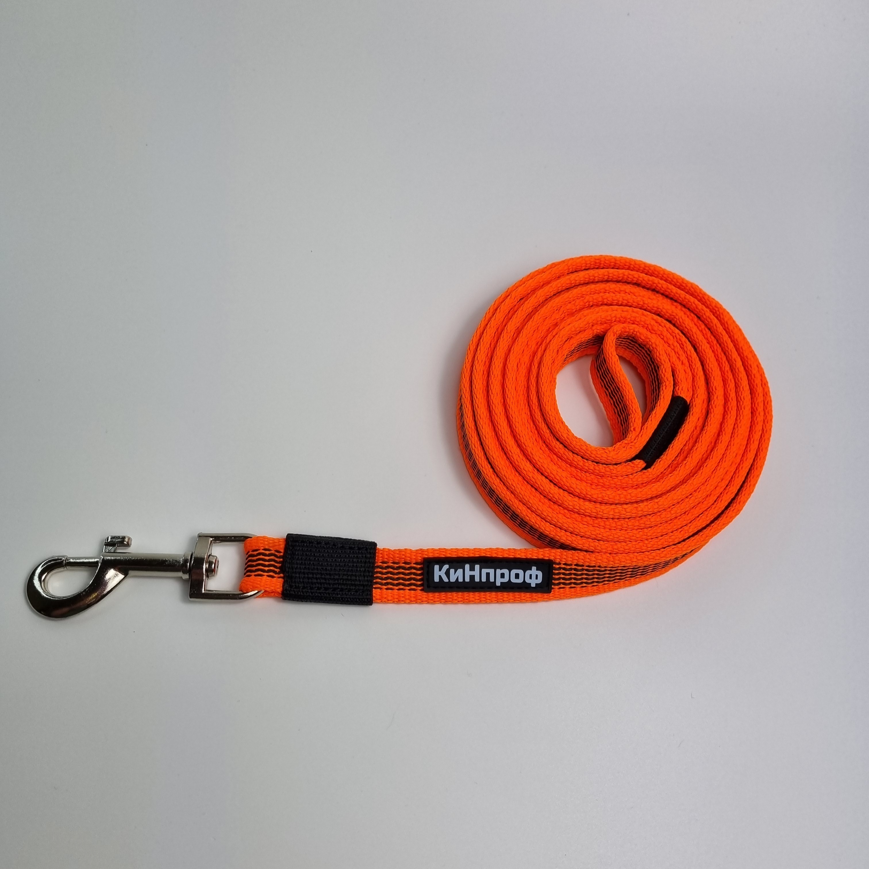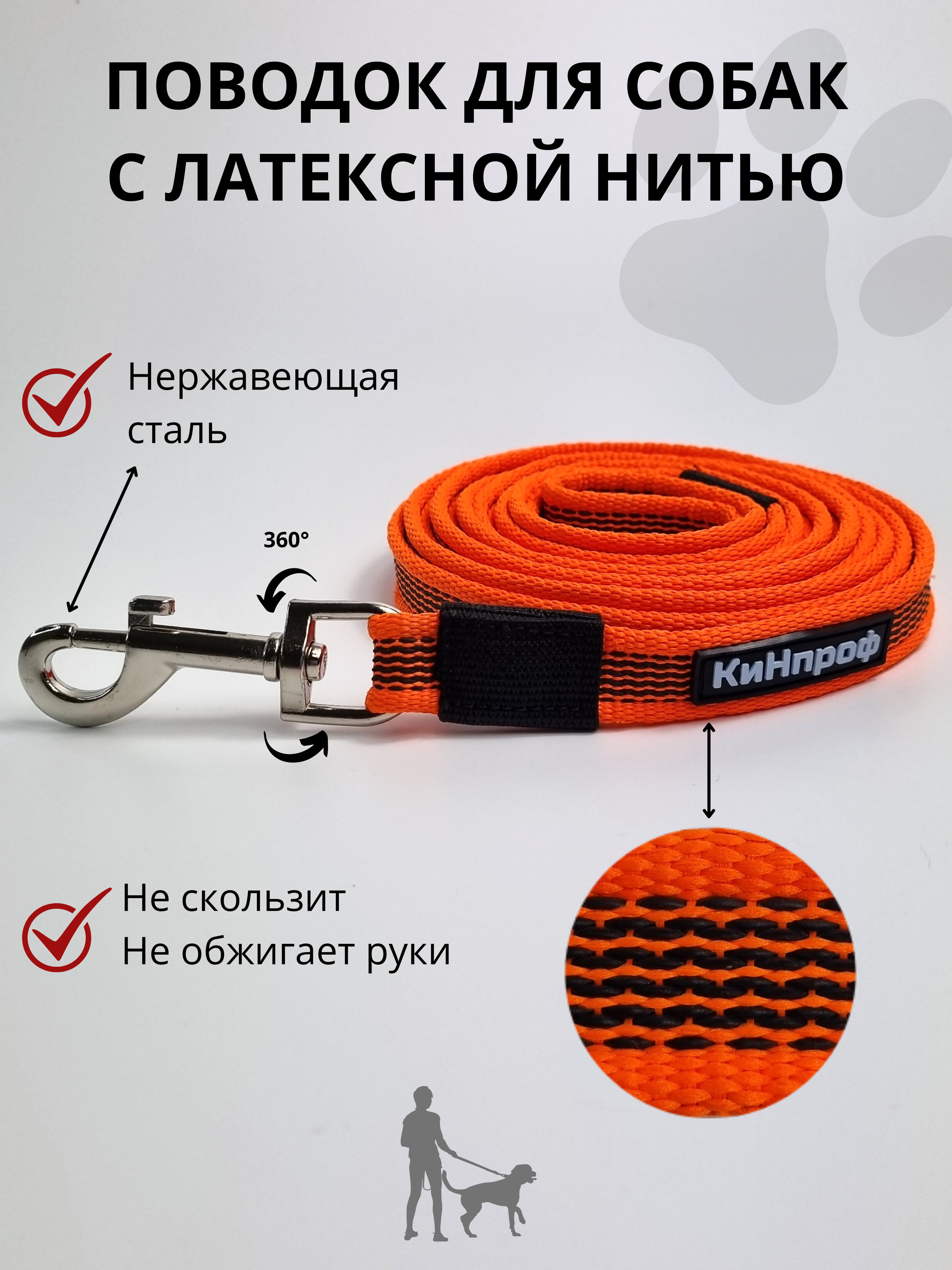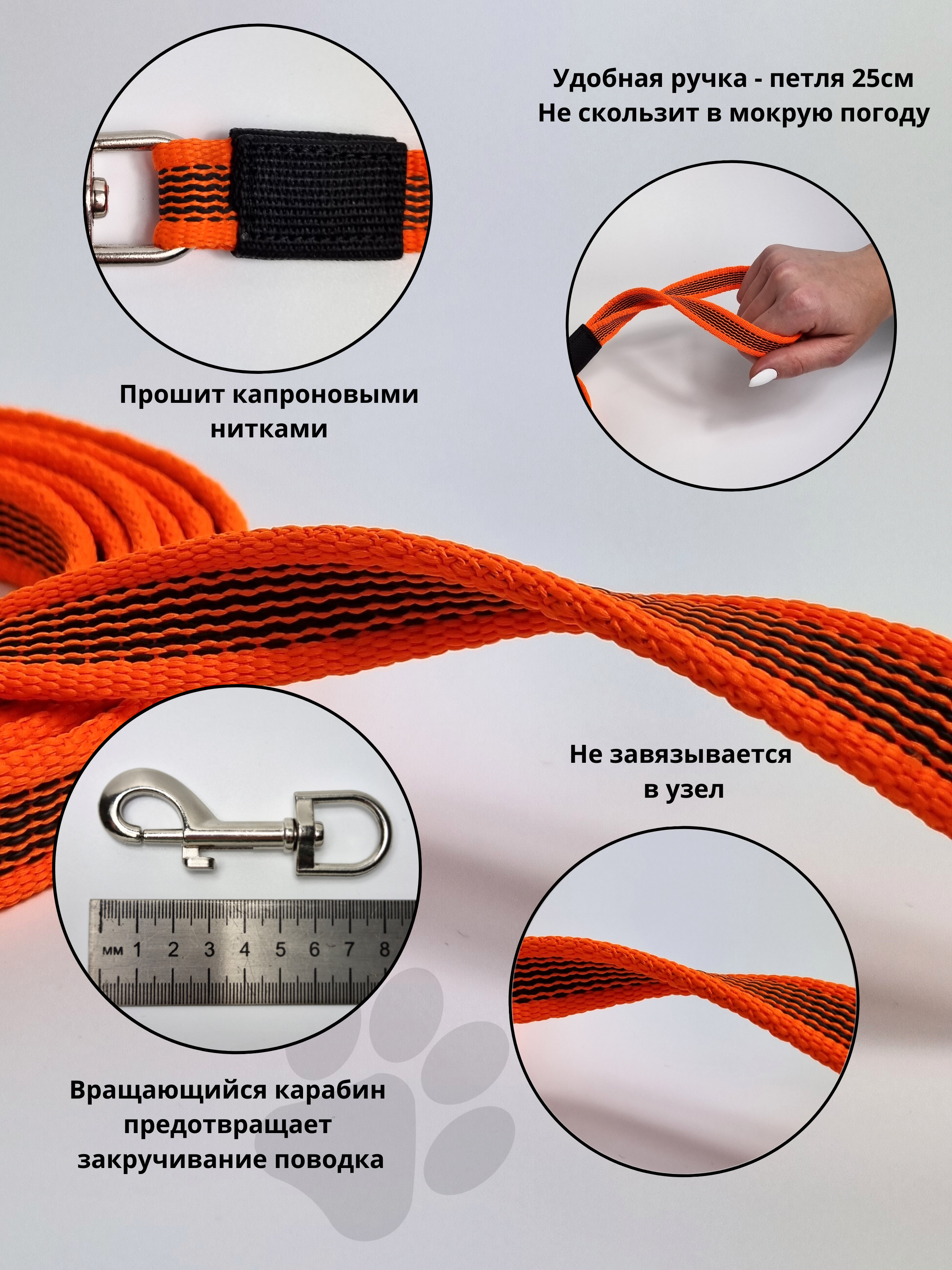 Поводок для собак прорезиненный(с латексной нитью),стальной карабин, длина 5 метров, оранжевый