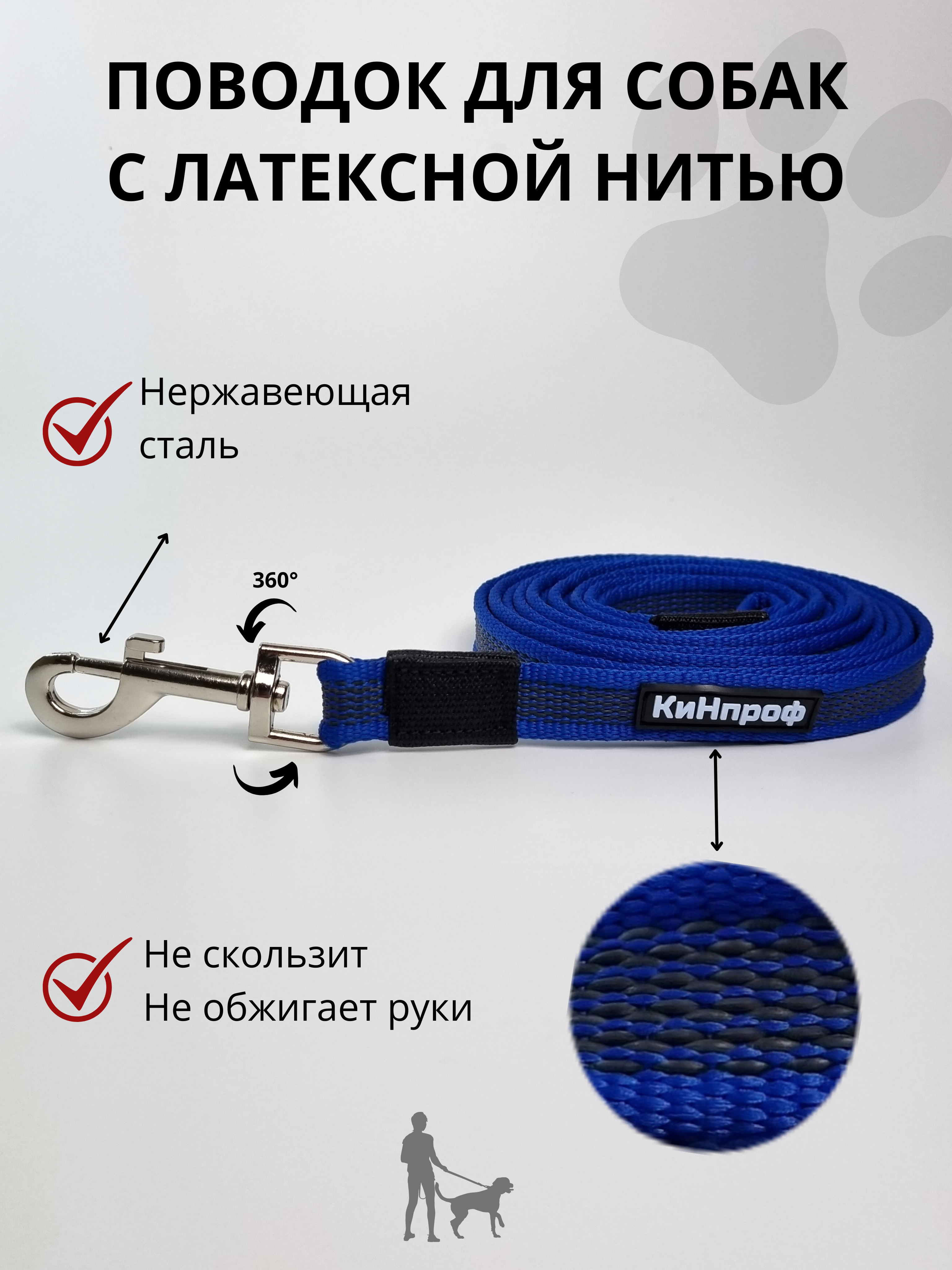 Прорезиненный поводок для собак (с латексной нитью),стальной карабин, длина 5 метров, синий