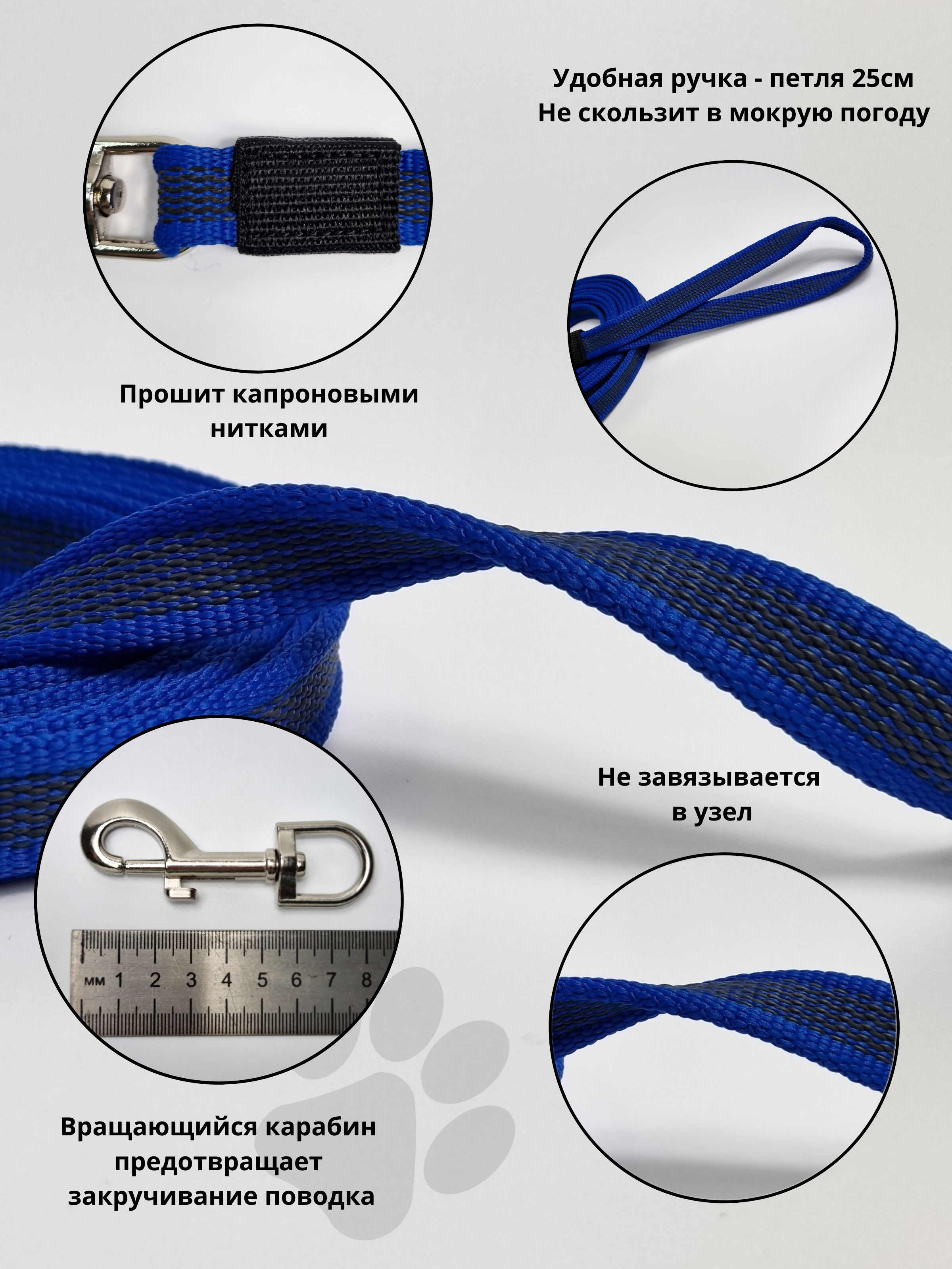 Поводок для собак прорезиненный (с латексной нитью),стальной караби, длина 3 метра,синий