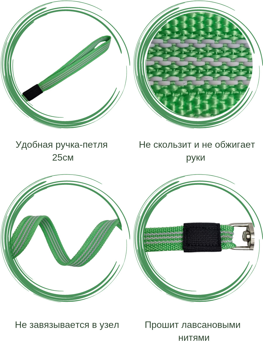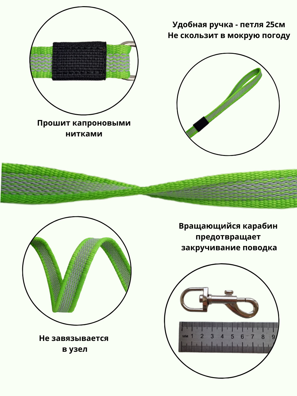 Поводок для собак прорезиненный (с латексной нитью) длина 5 м, салатовый-белый