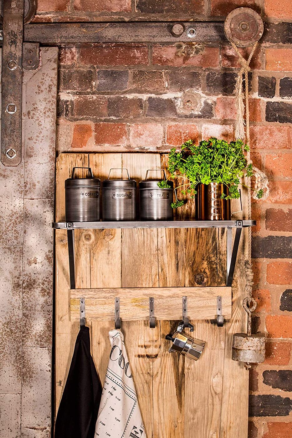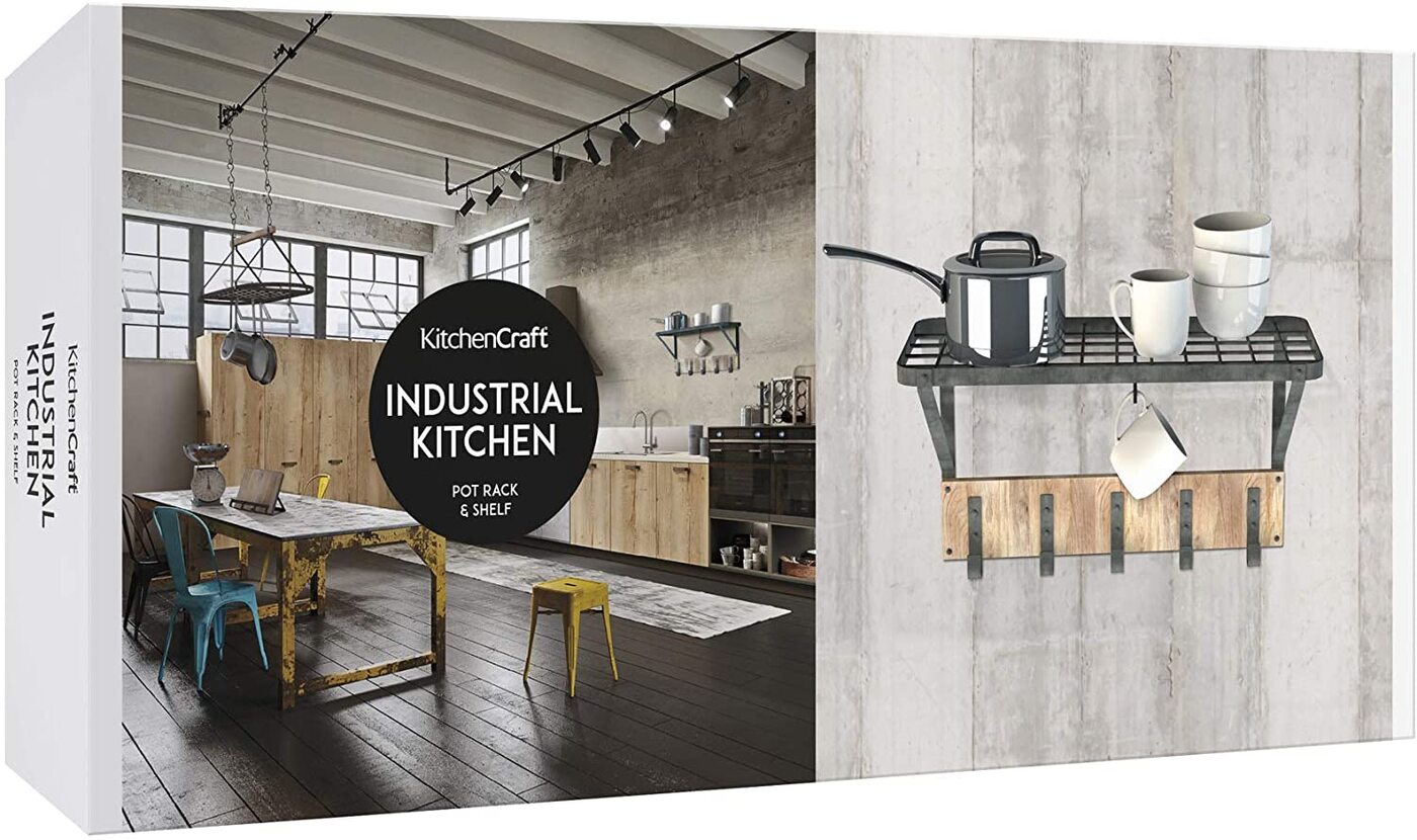 Полка KitchenCraft Industrial с крючками, 32,5x60x25,5 см