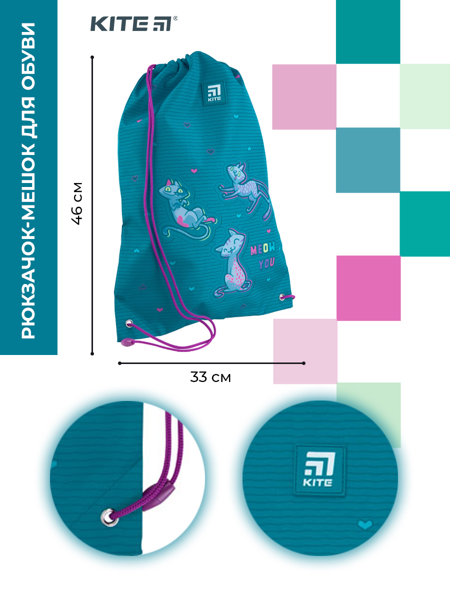 Школьный мешок для сменной обуви, 1 отделение Adorable, 46x33 см