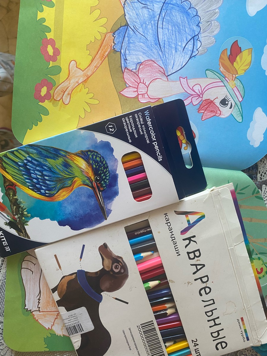 Карандаши акварельные цветные мягкие для рисования и детского творчества с кистью, 24 шт.