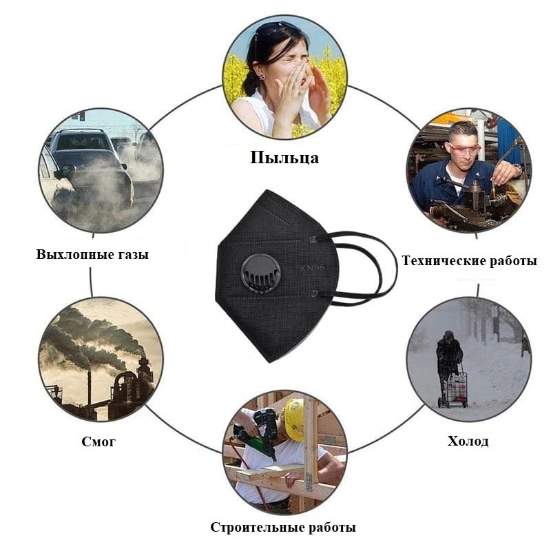 Респиратор универсальный KN95, FFP2, 4 шт.