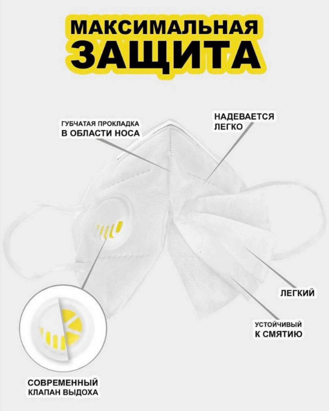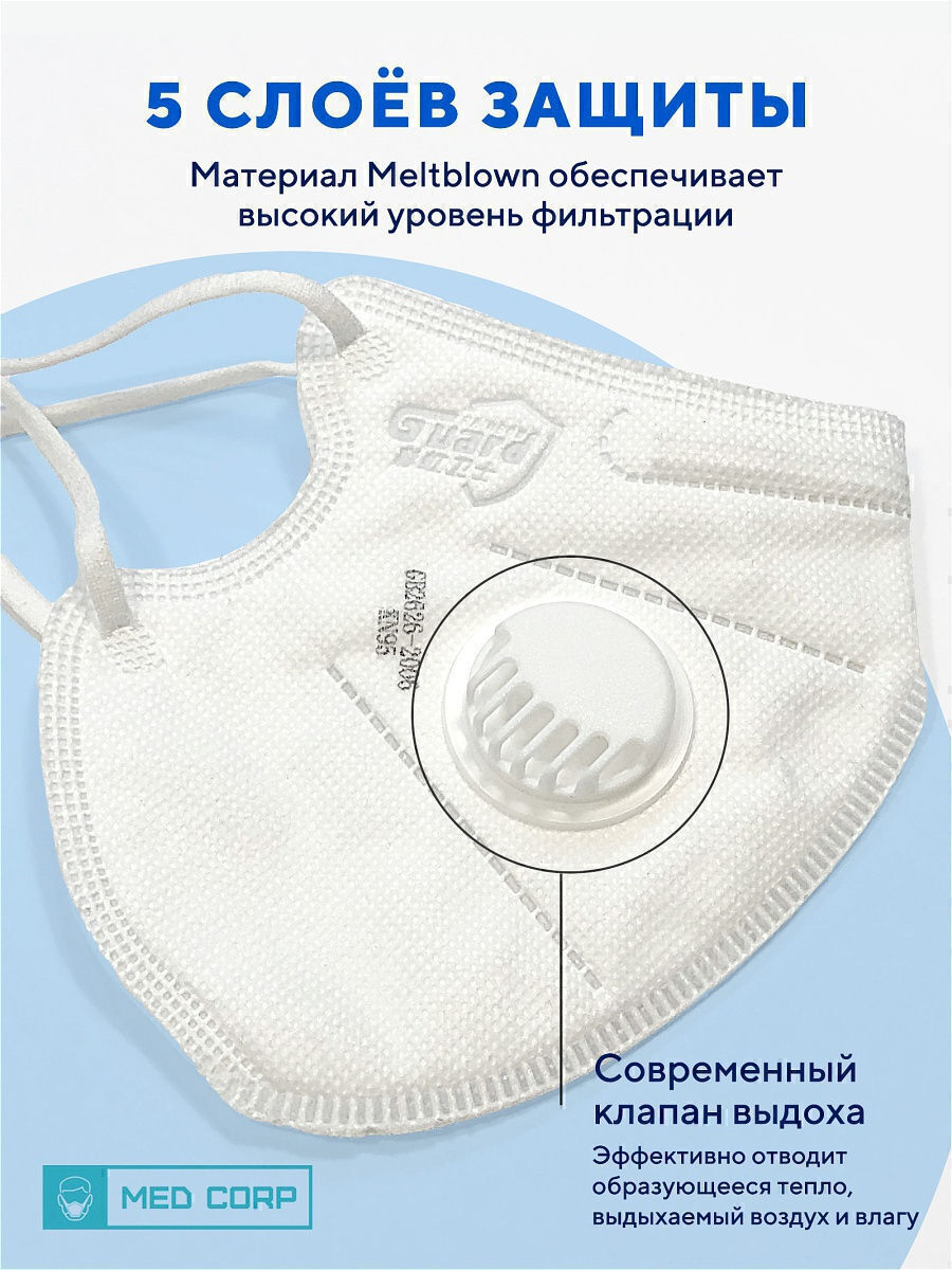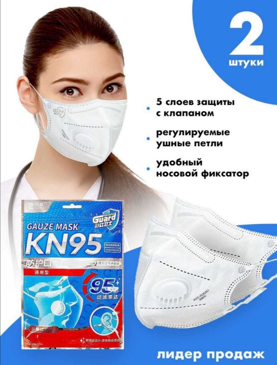 Респиратор универсальный KN95 с клапаном, FFP2, размер Универсальный, 5 шт.