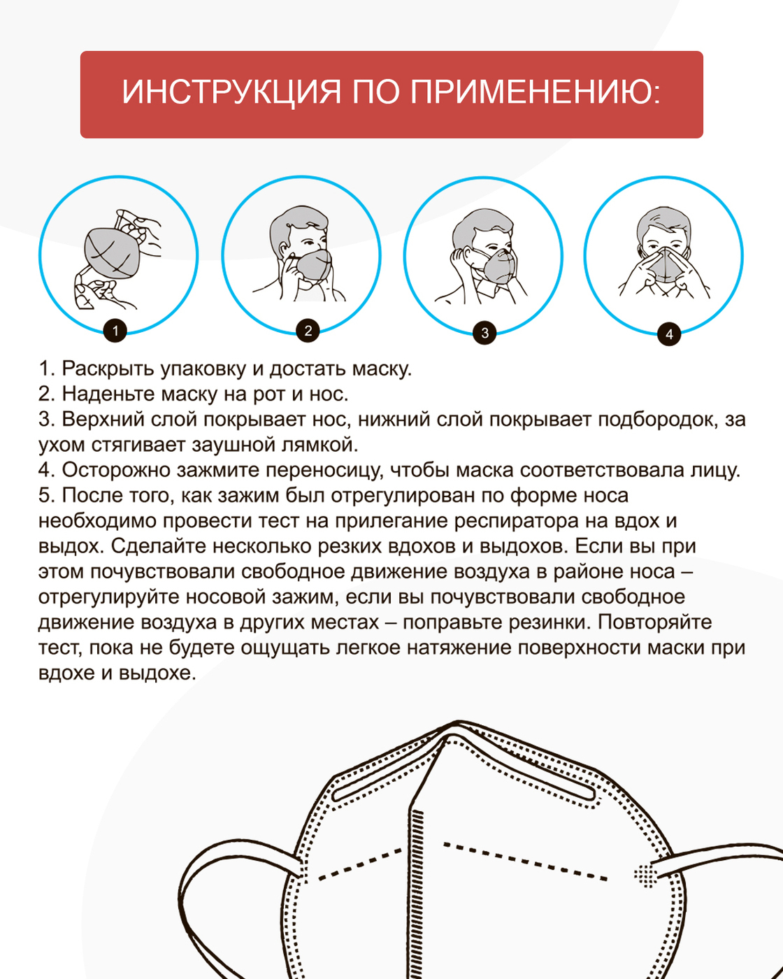 Респиратор универсальный KN95, FFP2, размер Универсальный, 5 шт.