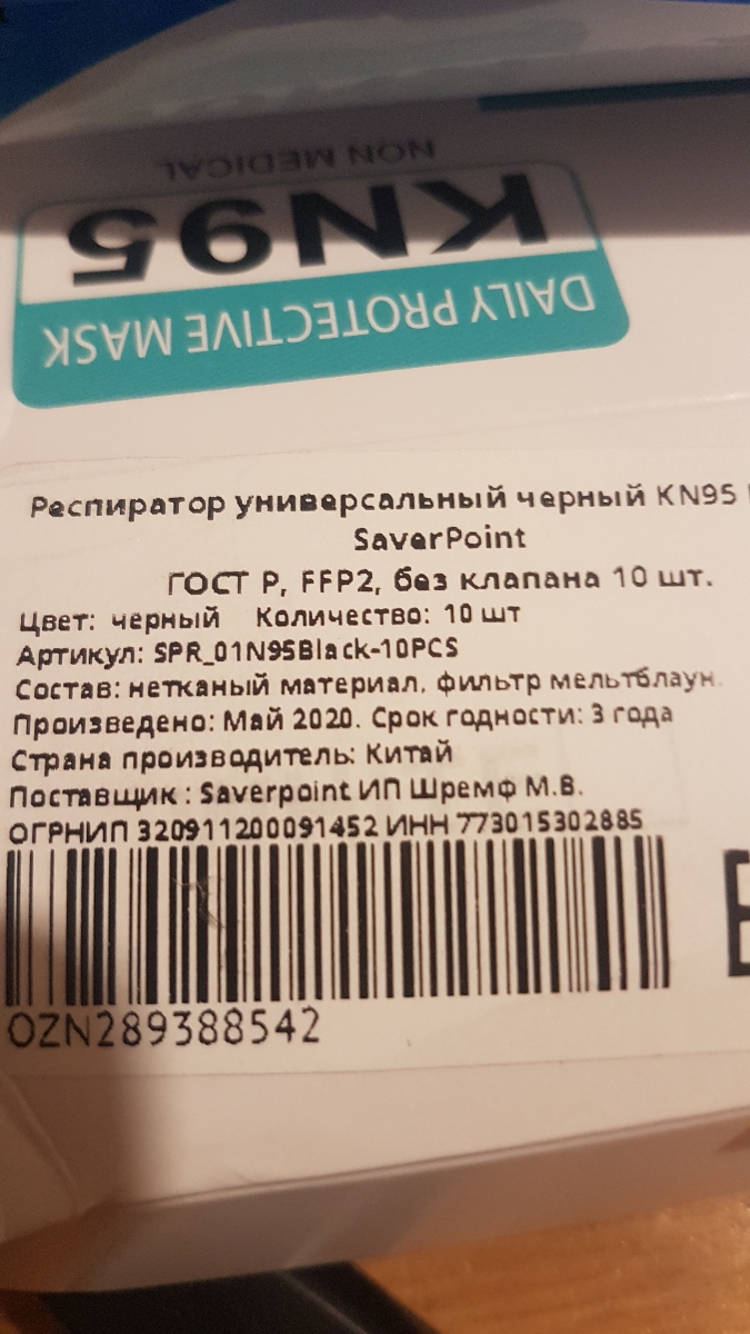 Респиратор универсальный KN95, FFP2, 3 шт.