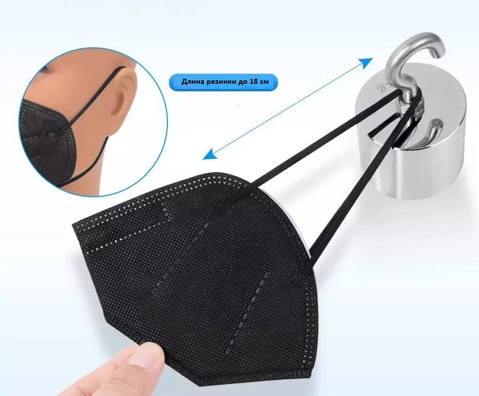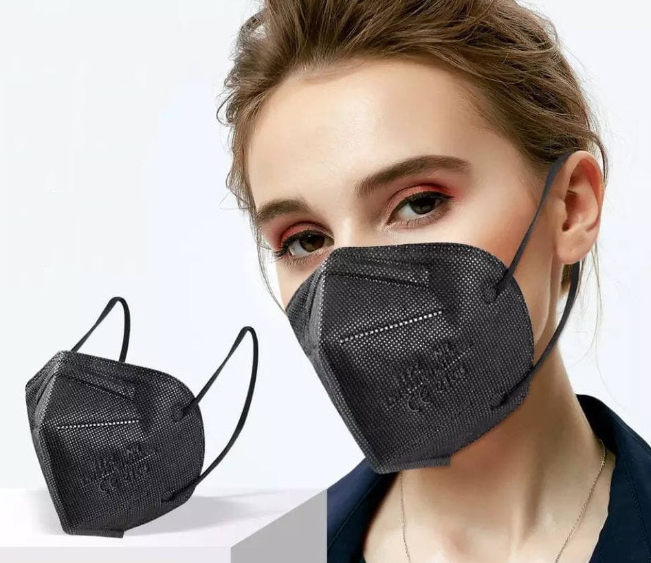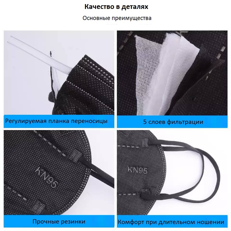 Респиратор универсальный KN95 без клапана BLACK черный ГОСТ Р, FFP2, размер Универсальный, 5 шт.