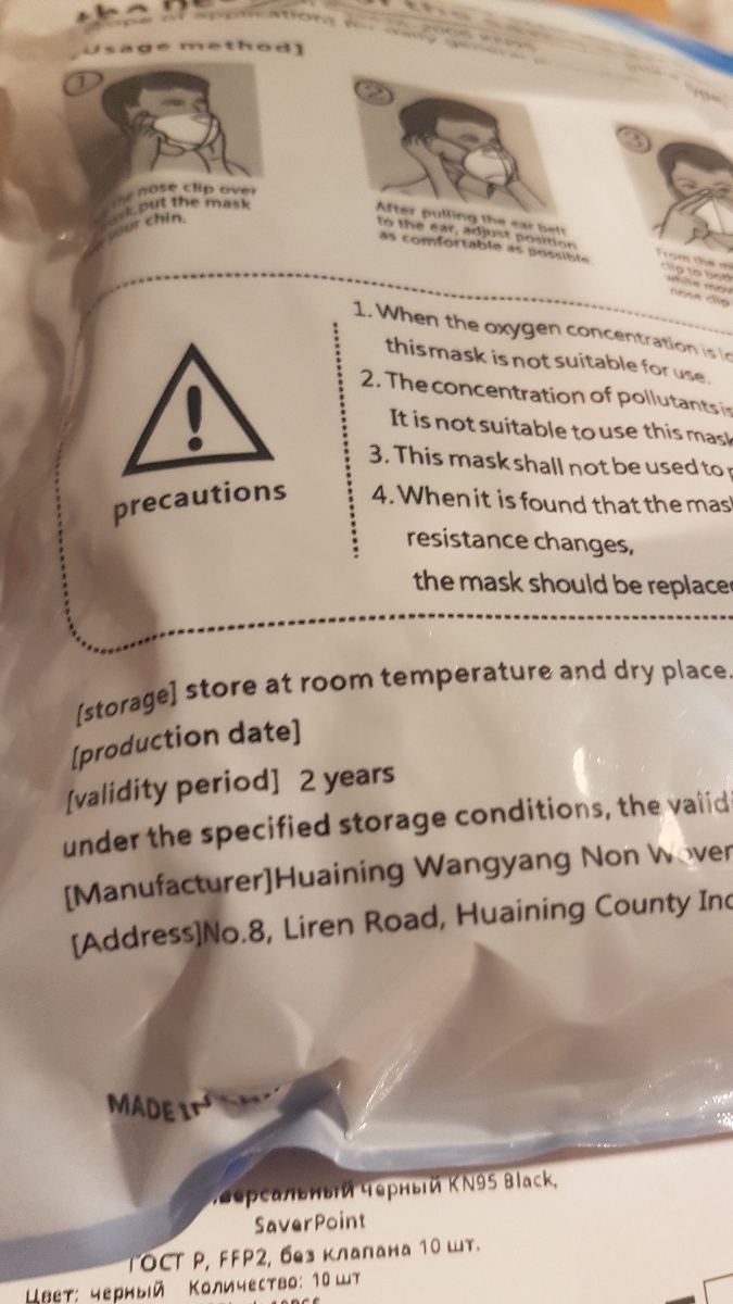 Респиратор универсальный KN95, FFP2, 10 шт.